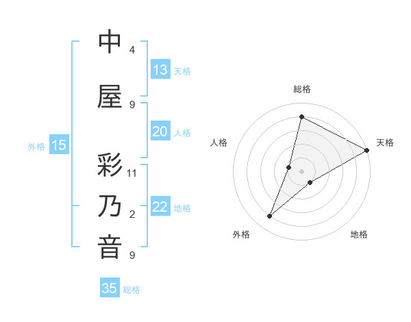 中屋 彩乃音さんの総格は35画の4点!