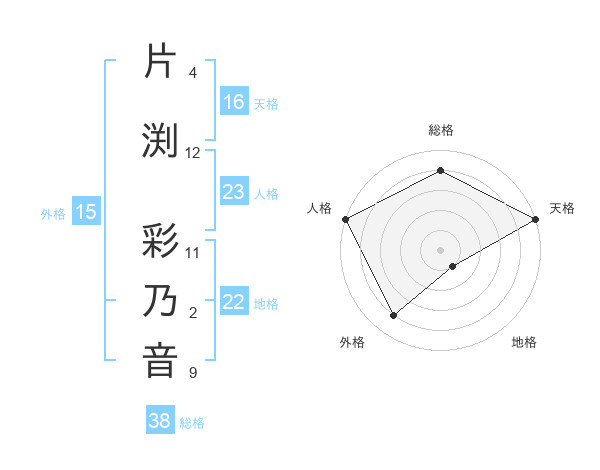 片渕 彩乃音さんを姓名の画数から五運を鑑定