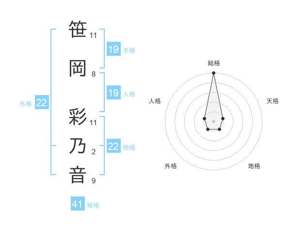 笹岡 彩乃音さんを姓名の画数から五運を鑑定