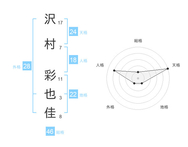 沢村 彩也佳さんの天格は24画の5点!