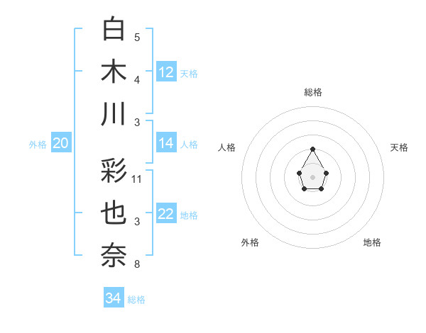 白木川 彩也奈さんの総格は34画の2点!