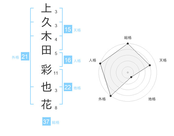 上久木田 彩也花さんを姓名の画数から五運を鑑定