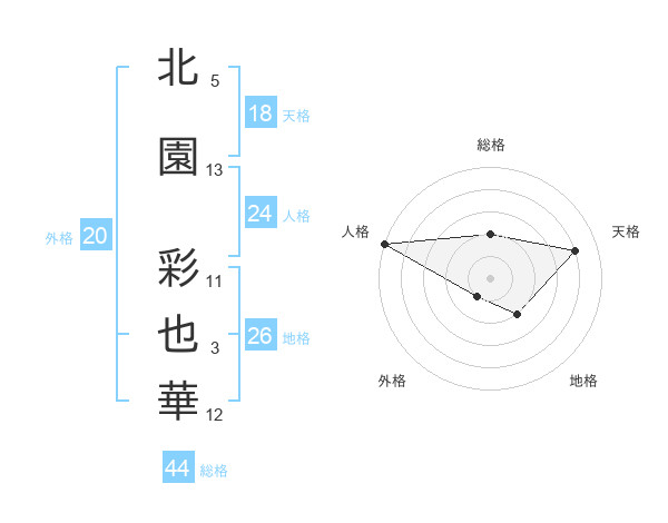 北園 彩也華さんを姓名の画数から五運を鑑定