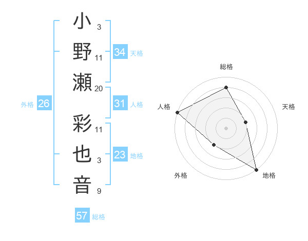 小野瀬 彩也音さんを姓名の画数から五運を鑑定