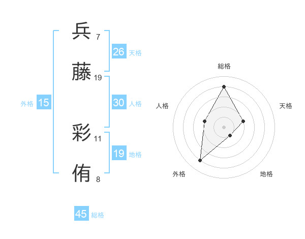 兵藤 彩侑さんを姓名の画数から五運を鑑定