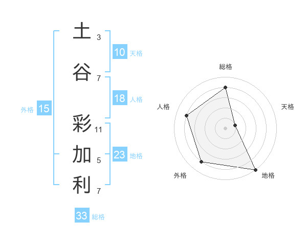 土谷 彩加利さんを姓名の画数から五運を鑑定