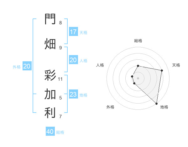 門畑 彩加利さんの天格は17画の4点!