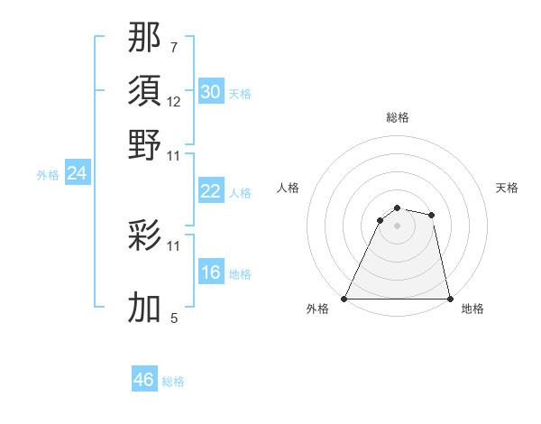 那須野 彩加さんの外格は24画の5点!