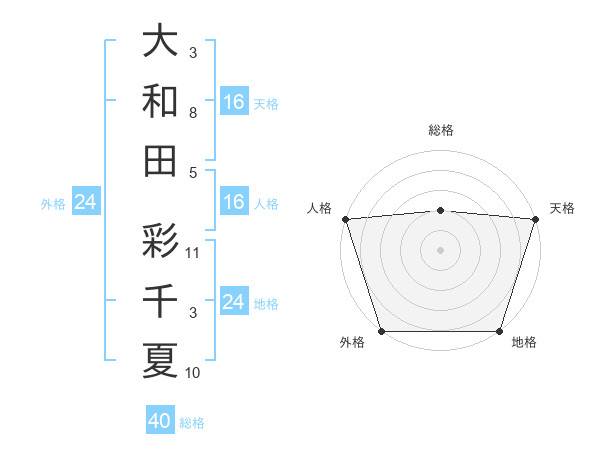 大和田 彩千夏さんの天格は16画の5点!