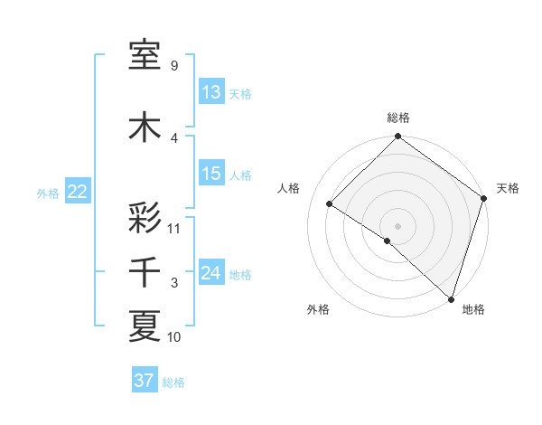 室木 彩千夏さんを姓名の画数から五運を鑑定
