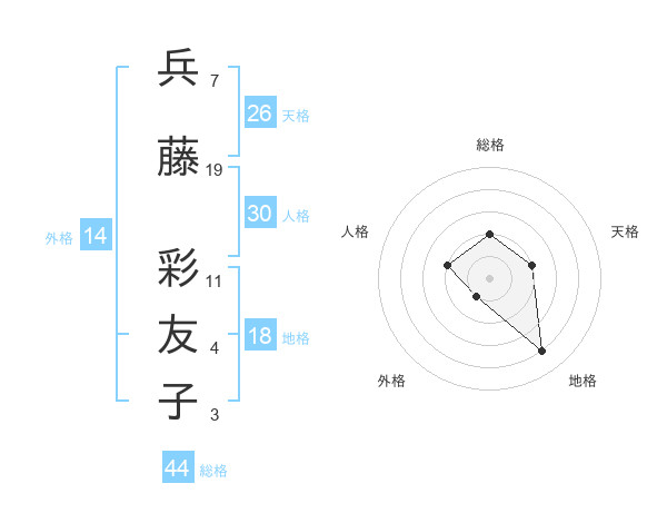 兵藤 彩友子さんの総格は44画の2点!