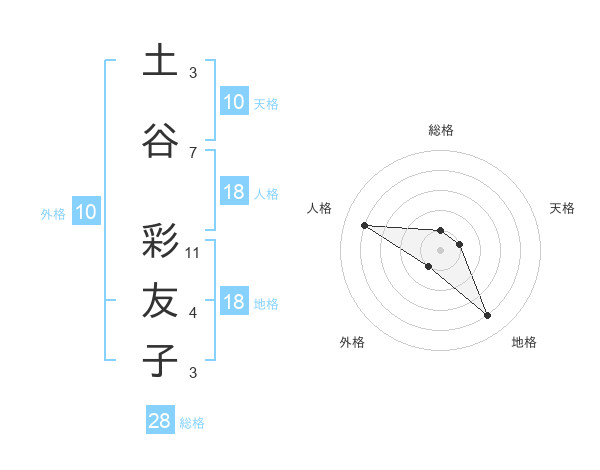 土谷 彩友子さんを姓名の画数から五運を鑑定