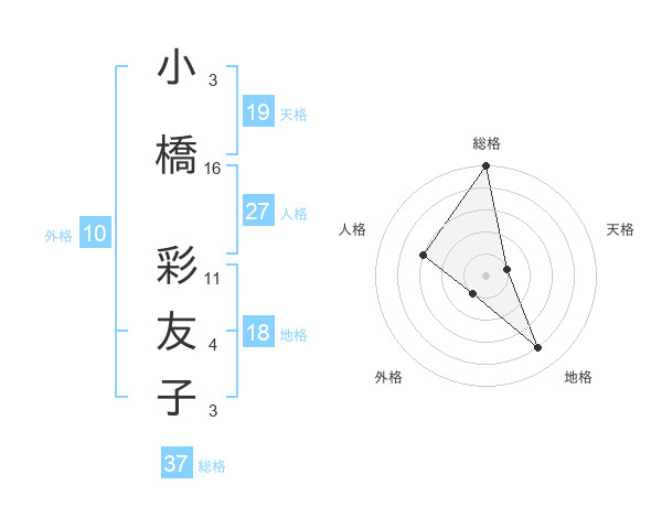 小橋 彩友子さんを姓名の画数から五運を鑑定