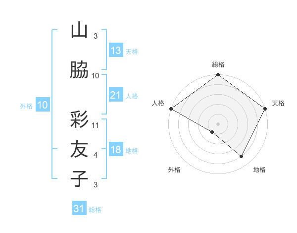 山脇 彩友子さんを姓名の画数から五運を鑑定
