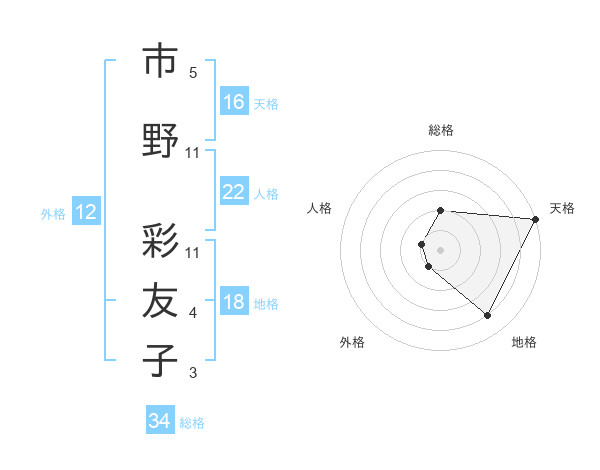 市野 彩友子さんを姓名の画数から五運を鑑定