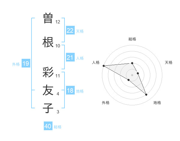 曽根 彩友子さんを姓名の画数から五運を鑑定