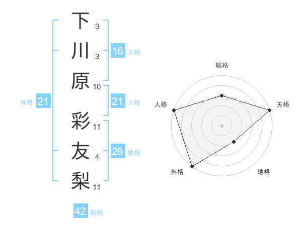 下川原 彩友梨さんを姓名の画数から五運を鑑定