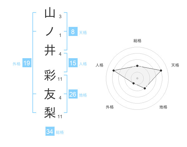 山ノ井 彩友梨さんを姓名の画数から五運を鑑定