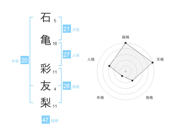 石亀 彩友梨さんを姓名の画数から五運を鑑定