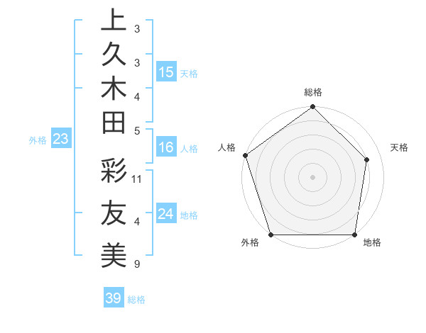 上久木田 彩友美さんを姓名の画数から五運を鑑定
