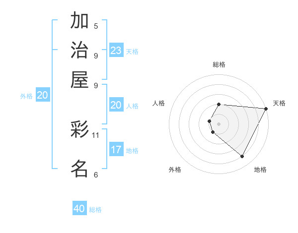 加治屋 彩名さんを姓名の画数から五運を鑑定