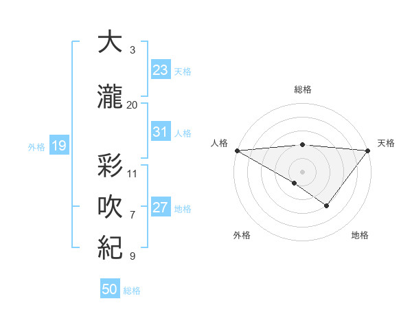 大瀧 彩吹紀さんを姓名の画数から五運を鑑定