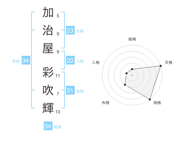 加治屋 彩吹輝さんの天格は23画の5点