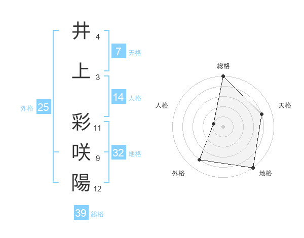 井上 彩咲陽さんを姓名の画数から五運を鑑定