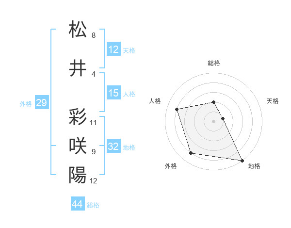 松井 彩咲陽さんを姓名の画数から五運を鑑定