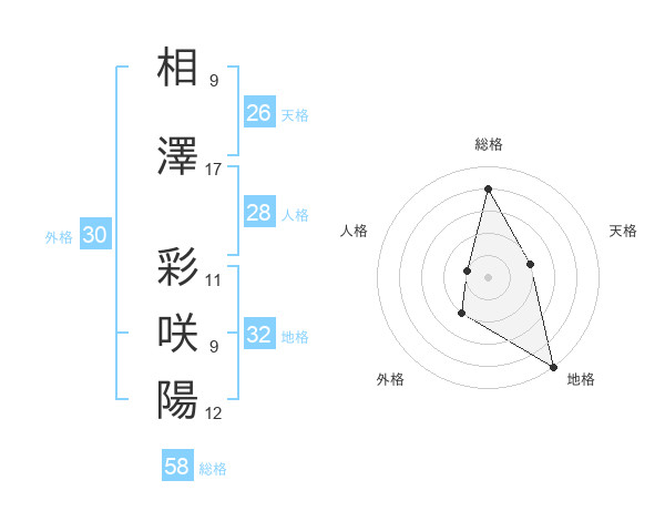 相澤 彩咲陽さんを姓名の画数から五運を鑑定