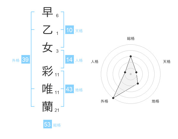 早乙女 彩唯蘭さんの総格は53画の3点!