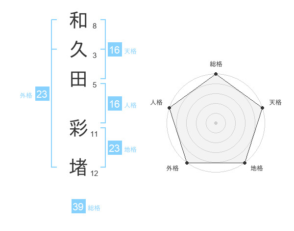 和久田 彩堵さんの天格は16画の5点!
