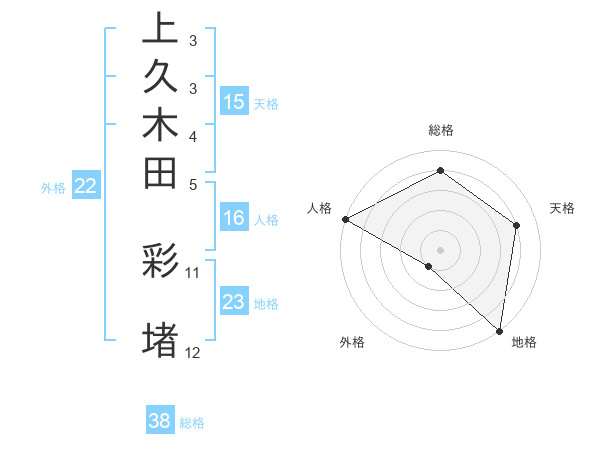 上久木田 彩堵さんの総格は38画の4点!