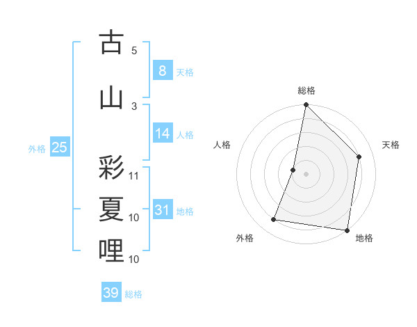 古山 彩夏哩さんを姓名の画数から五運を鑑定