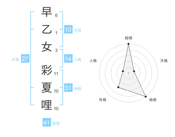 早乙女 彩夏哩さんを姓名の画数から五運を鑑定
