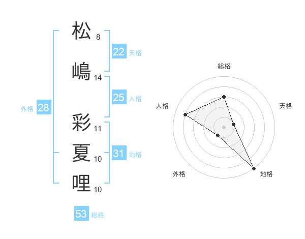 松嶋 彩夏哩さんを姓名の画数から五運を鑑定