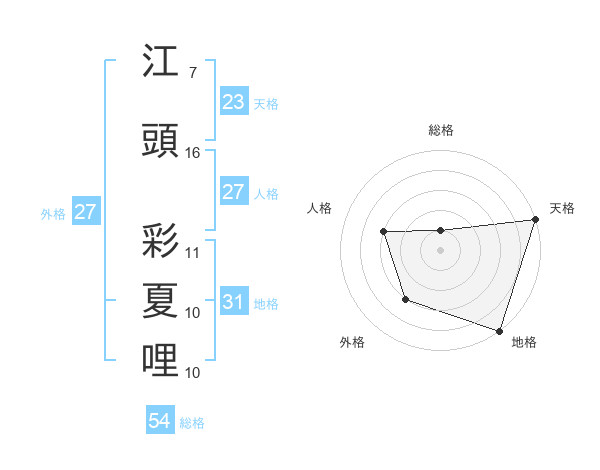 江頭 彩夏哩さんを姓名の画数から五運を鑑定