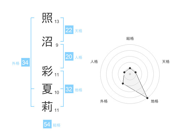 照沼 彩夏莉さんを姓名の画数から五運を鑑定