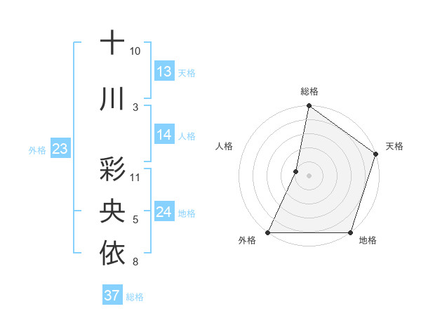 十川 彩央依さんの総格は37画の5点!