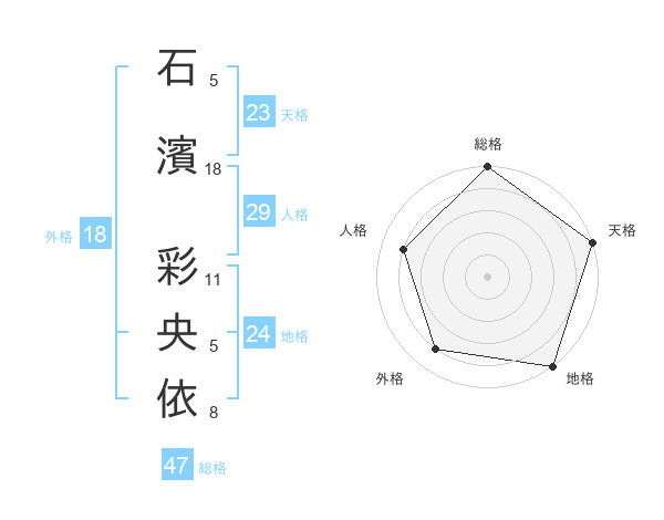 石濱 彩央依さんの総格は47画の5点!