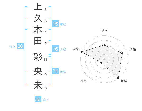 上久木田 彩央未さんを姓名の画数から五運を鑑定