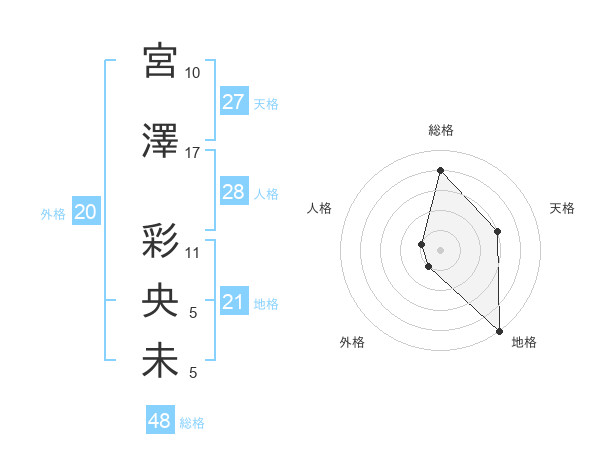 宮澤 彩央未さんの地格は21画の5点!