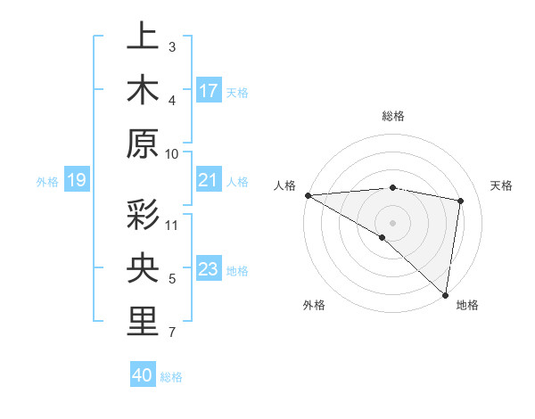 上木原 彩央里さんを姓名の画数から五運を鑑定