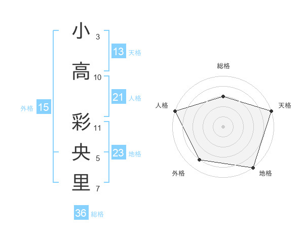 小高 彩央里さんの天格は13画の5点!