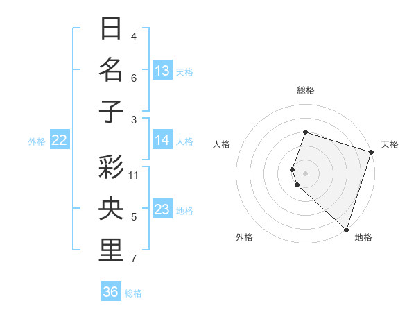 日名子 彩央里さんの天格は13画の5点!