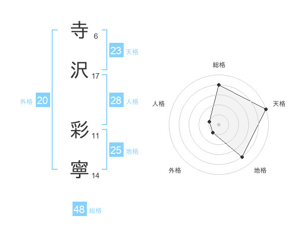 寺沢 彩寧さんの天格は23画の5点!