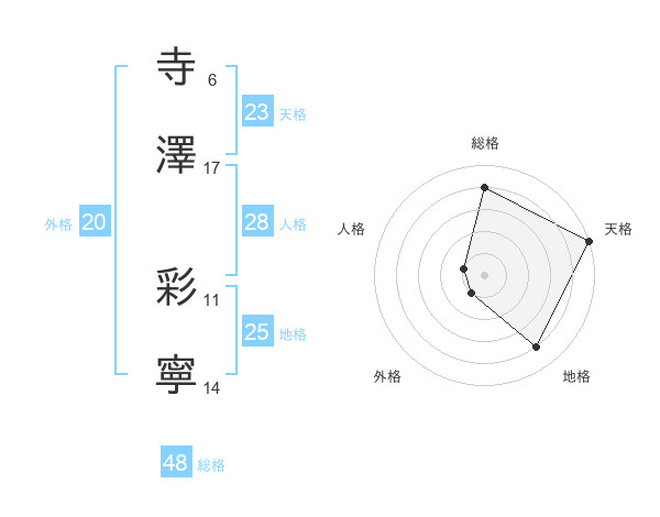 寺澤 彩寧さんの天格は23画の5点!