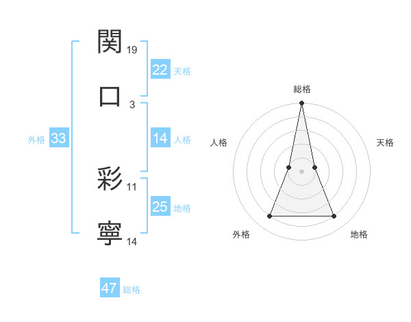 関口 彩寧さんを姓名の画数から五運を鑑定
