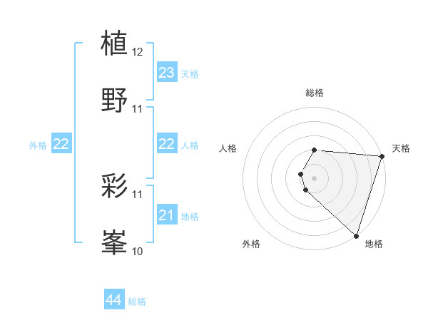 植野 彩峯さんを姓名の画数から五運を鑑定