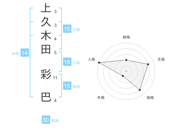 上久木田 彩巴さんを姓名の画数から五運を鑑定